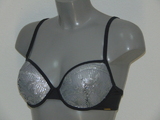 Vorgeformtes Bikinioberteil mit Bügeln für zusätzlichen Halt. Dieses Oberteil ist ein echter Blickfang! Die Cups sind mit einem schönen Muster aus Pailletten versehen. Die Seitenteile und Schulterriemen sind in Taupe gehalten. Die Schulterträger sind am Rücken abnehmbar, so dass sie auch über Kreuz getragen werden können.