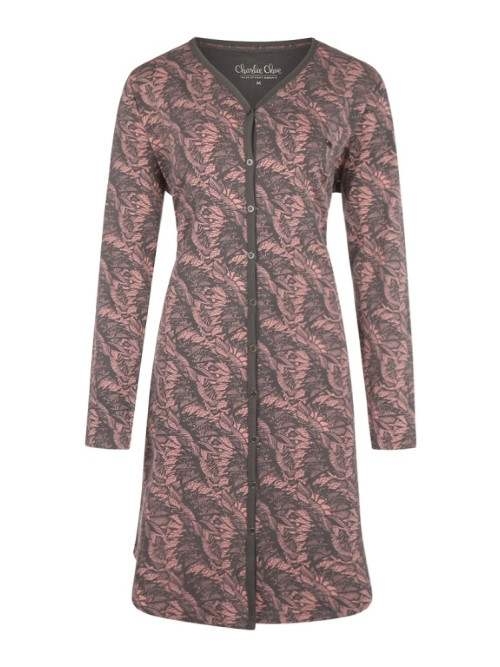 Das Charlie Choe Wild Nights Damen-Nachthemd mit stilisierten Blättern hat die Farben Altrosa und Dunkelgrau. Das Button-Down-Nachthemd kann mit den Leggings aus unserer Kollektion kombiniert werden.